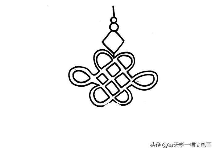 3、在中国结的下方再画上流苏装饰,一个完整的中国结就画出来了。