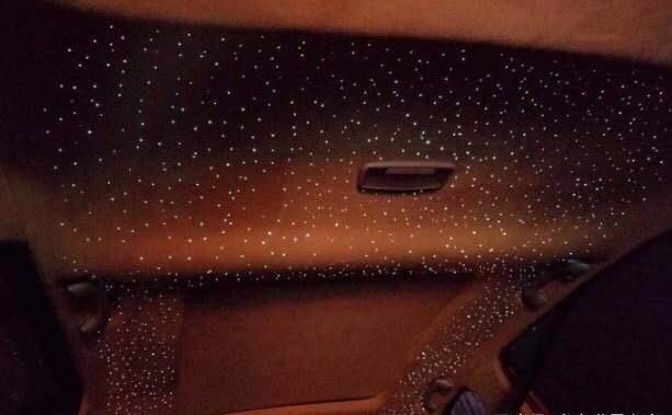 而把灯关闭后,通过图中可以看出,整个顶棚开始闪现出闪闪的星空模样,看着非常浪漫和有档次。据悉,整个顶棚共花了近10个小时,要穿1500多个孔才完成这样一个星空顶棚,可见改装汽车也不是一件容易的事。不过经过这样改装后的宝骏510,简直比劳斯莱斯更有范。当然,在档次上也提高了不少。