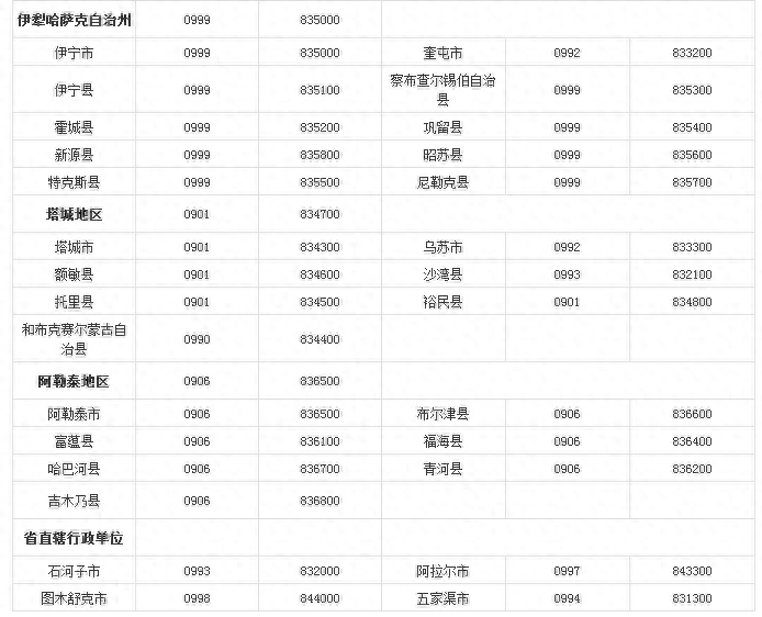 中国各省市的电话区号