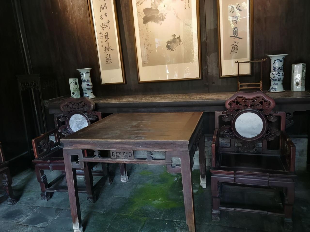 堂屋,又称大堂屋,两侧悬挂着板桥先生书画木刻作品,还有郑板桥同学顾于观、王国栋以及“扬州八怪”金农、李鱓等人书画作品复制件。堂屋正中是徐渭的书画作品复制件。