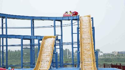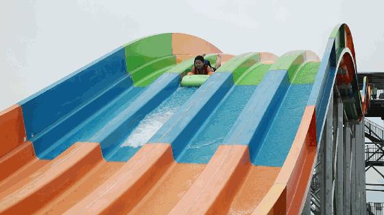 瞬时跌落的激流勇进,在急行的滑道中水化飞溅,