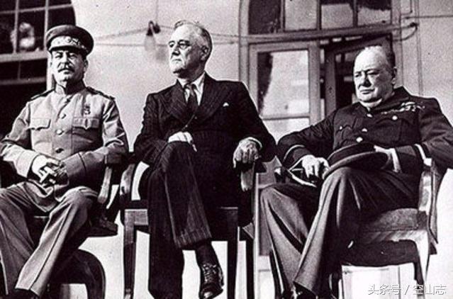 二战的三巨头,从左到右是丘吉尔,罗斯福,斯大林