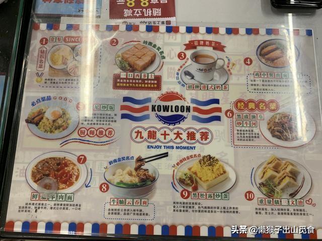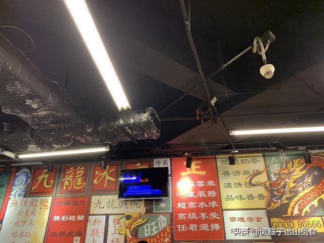 九龙冰室是一家很有名气的港式茶餐厅,也是一家古惑仔主题餐厅,店铺是按照电影《九龙冰室》来装修的,墙上香港老电影的海报,电视里播放着粤语的MV,标准的港式茶餐厅的装修,港味十足。菜品种类很丰富,每次来必点的三道王牌