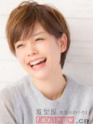 小脸女生适合什么发型呢?一头棕色系的头发,简单的修剪成谢瑞华短发的造型,爽朗的笑脸更显活力。