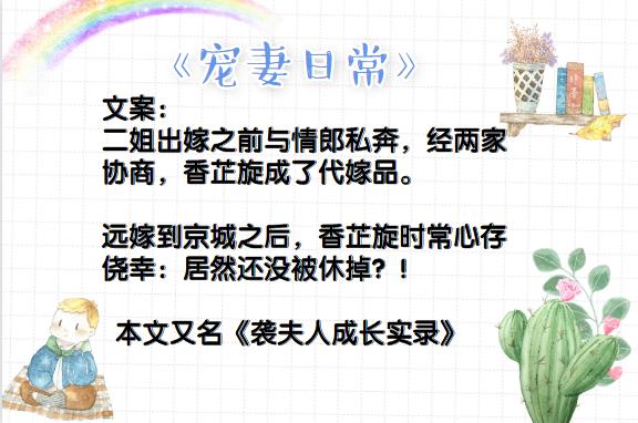 短评:霸道女主VS霸气男主。1V1,喜乐融融甜宠文。这是一段阴差阳错成就的幸福!先婚后爱文,有心计的庶姐逃婚了,于是女主只好替二姐冲喜嫁入男主家,却不想快要死的夫君竟然康复了!随着他的康复,一些阴谋也浮出水面来了,在这些阴谋诡计中男女主自然而然的就相爱了。然后携手宅斗到宫斗再到官场争斗。。。。简直是又甜又刺激!