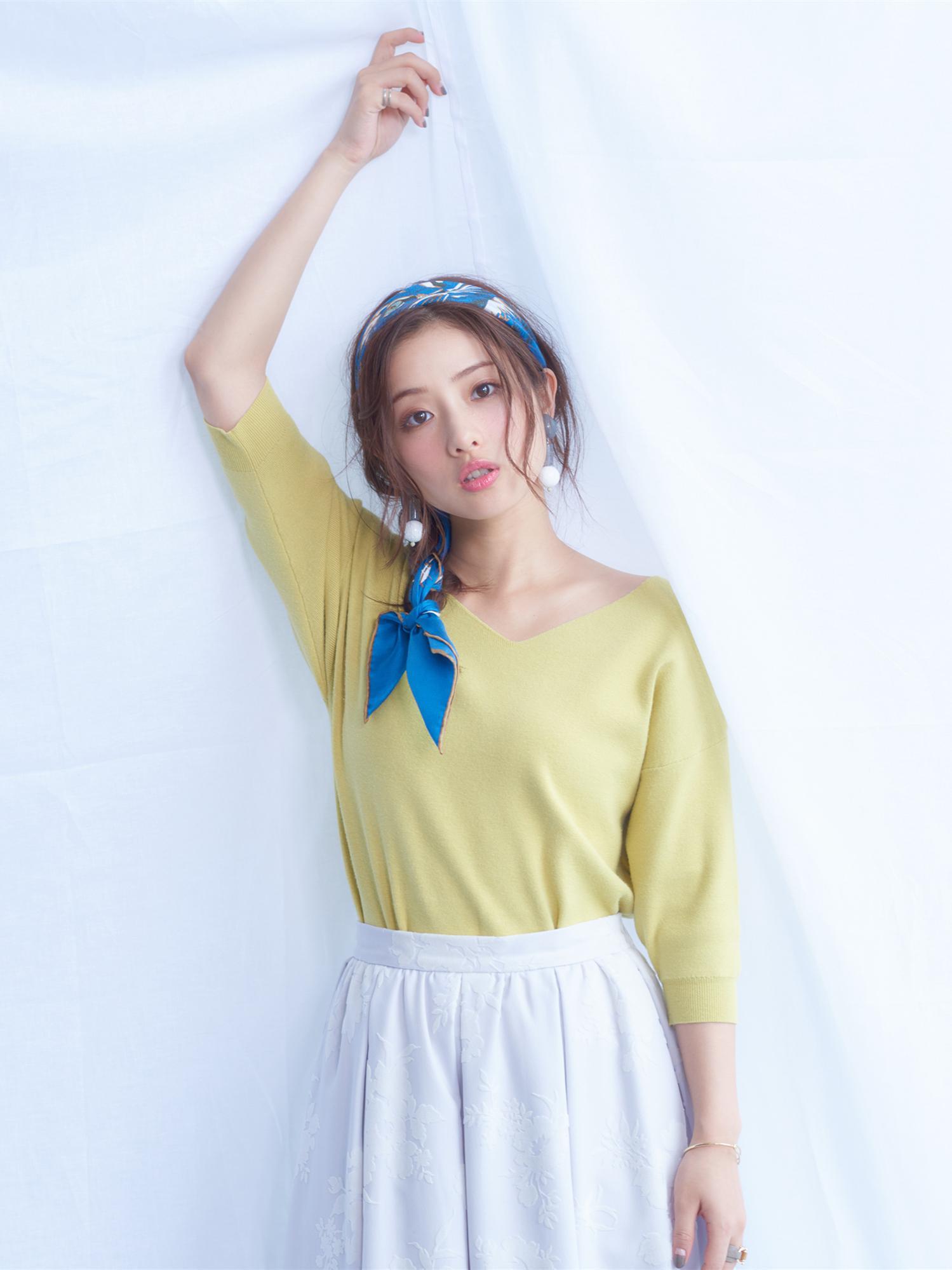 不仅是这套造型,石原里美之前的另一套造型可就出镜率非常高,不论是从发型上看还是搭配上说,可都是一大经典,芥末黄色的V领上衣不仅拉长了脖颈曲线,而且白色高腰裤更是休闲又森系,这种大气的日常穿搭无疑也是日常造型的绝佳选择啦。