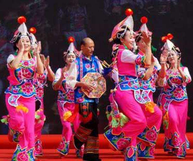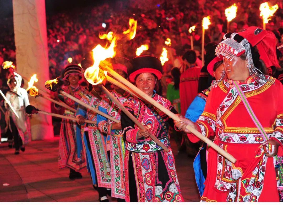 彝族火把节每年都会吸引很多人参与,夜晚时把火把聚集在一起点燃,大家以火把为中心围起一个很大的圈,手牵手摆动起来,脚踢起来,走几步就踢一下,大家一起载歌载舞。白天可以看摔跤和斗牛表演。
