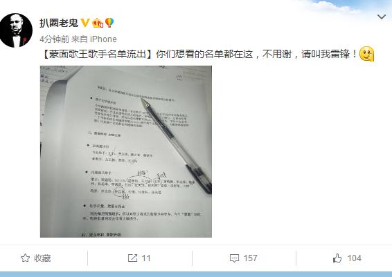 就在刚才有微博大v爆料,《蒙面歌王》第二季歌手名单遭泄露,将会有多位大咖来袭。