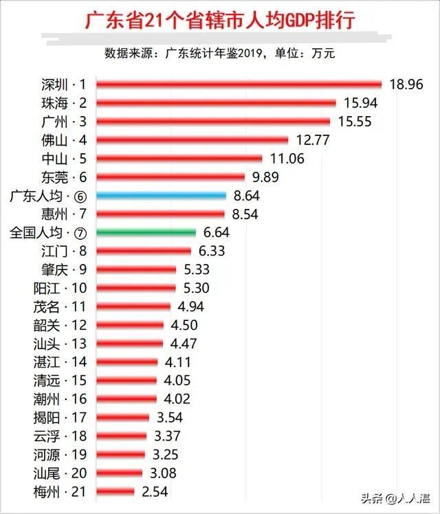 从数据分析,广东21个省辖市只有7个城市超过全国人均值,湛江排名第十四,无缘赶超茂名,这么多年,我们苦苦追赶茂名,究竟会有超越的一天吗?
