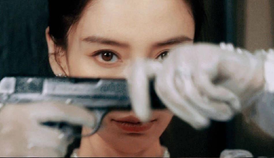 杨颖表现力十足,穿着白纱裙持枪反差感拉满。