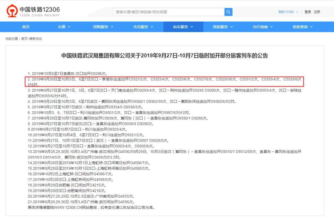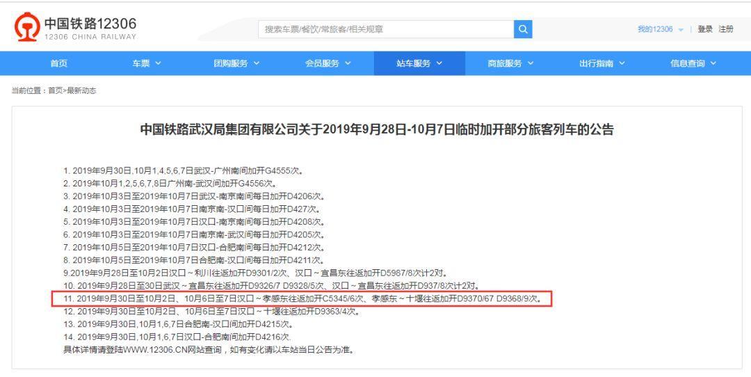 孝感东站国庆期间加开9对列车(内附列车时刻表)