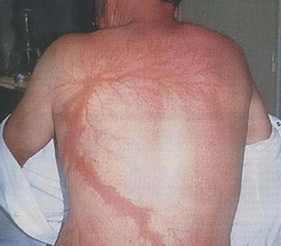 首先要看清楚,雷击纹的形状,几乎都是和电路差不多,就是散开的形状,这是因为雷电在接触人体表面的时候,他会通过红细胞从毛血管渗透到表皮去,这就会让人感觉这是被擦伤的感觉,国外较这种纹路是闪电纹,我们一般都是叫雷击纹比较多。