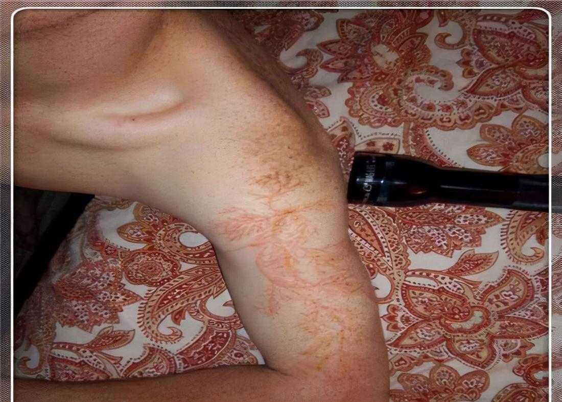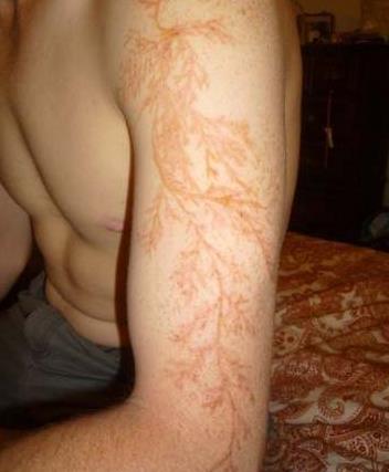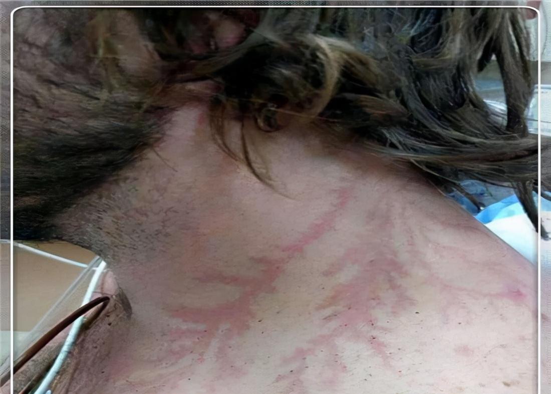 在医院的时候,整个人身体都是麻的,几天才缓过来,身体起初还有点虚弱,差不多半个月的时间,终于恢复过来,身体也没有什么太大的问题,不过碰到小狗小猫的时候,它们都很害怕自己,胸前也出现了一个电纹,这个电纹又叫雷击纹,由于在胸前不方便给大家看,就找了个手臂的给大家瞧瞧。