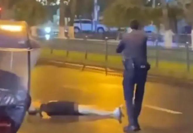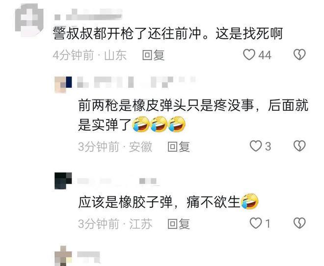 知情网友称,警方前两枪原来是盲枪,随后才实弹射击。起初它们是用来警告人们的,但击打只会带来疼痛。最后,警告无效后,开枪了。该男子在炮火下倒地后才被驯服。