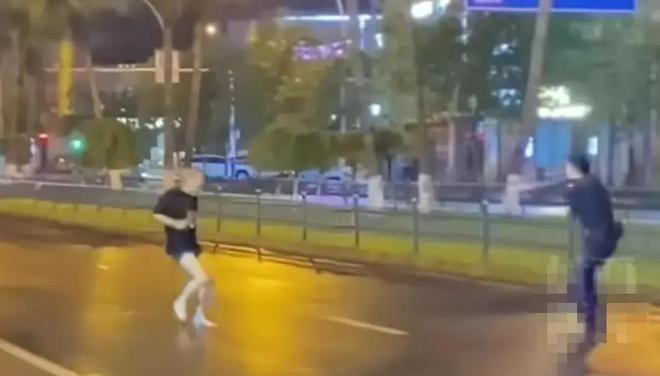 相关视频显示,路上一名黑衣男子手持刀,紧挨着一辆汽车。警察到达后,他向不远处的警察扔了几次,完全没有注意到警察有枪。指着他。