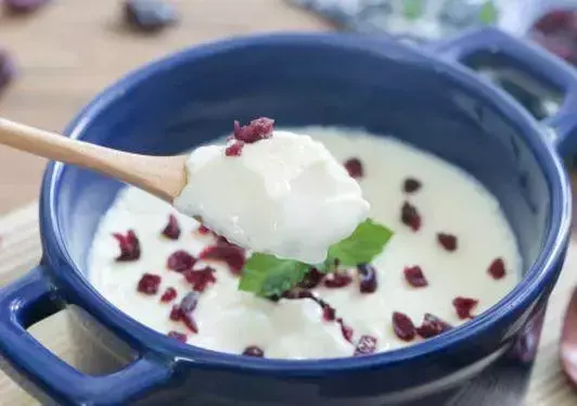 食材:全脂鲜奶160g、淡奶油20g、蛋清25g、细砂糖8g、蔓越莓、蜜红豆等适量