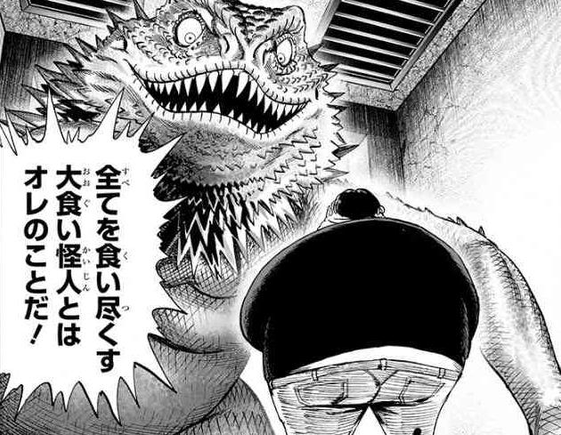 出现在猪神面前的是一个巨大的蜥蜴怪人,这个怪人自称是可以把一切事物都吃光,英雄也是他想要吞噬的对象。不过可惜的是在他的面前是同样以吃闻名的猪神,相信在吃东西这一个项目上没有人能够战胜猪神,所以这个怪人很有可能因为想要吃掉猪神而被猪神反杀,结果还可能成为猪神的盘中餐。