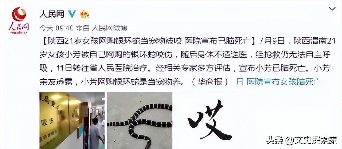 陕西21岁少女网购银环蛇等宠物被咬,医生宣布已脑死亡。