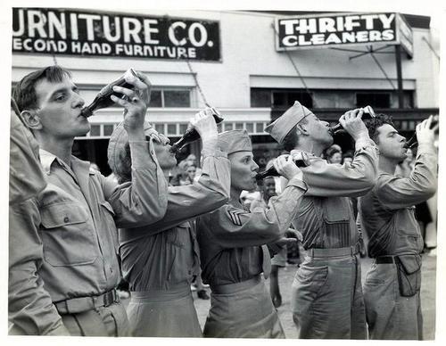 而可乐,那更是标配,二战期间,400万美军出境军人中,一年的可乐消耗量是10亿瓶,快乐水的历史由来已久!