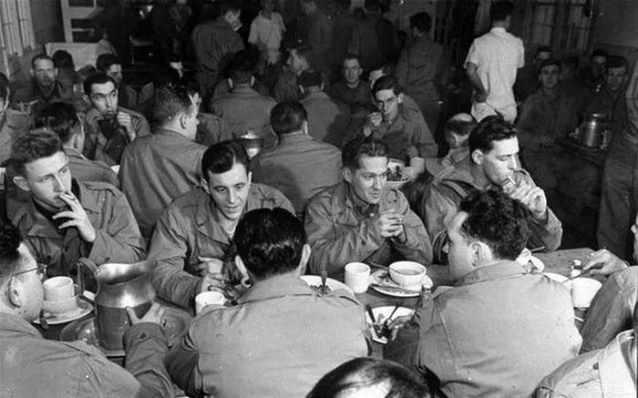 作为二战后期才开始大规模参战的美国来说,其战场上的伙食是最好的也是最为丰盛的,美国二战期间,战时的物资供应非常充足,凭借强大的经济实力和科技实力,不仅每个美国大兵都有几套卡其布的军服和呢料的军服,甚至还有各种大衣、夹克等配备衣服。