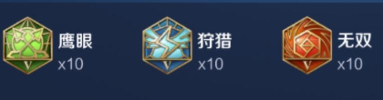 铭文选择:鹰眼×10,狩猎×10,无双×10