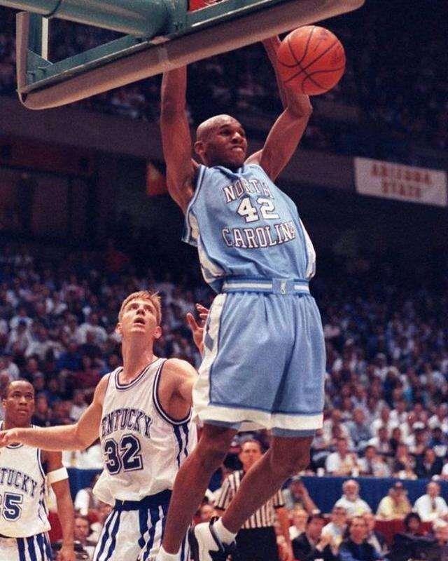 1974年生人,1993年在麦当劳全明星赛上获得MVP,并拿下当届的扣篮大赛冠军。顶着全美“最佳高中生”的头衔进入北卡,同样的身高、同样的位置、类似的打法,不得不让人有所期待。1995年2月2日,北卡对杜克,斯塔克豪斯躲过2人封盖的反身暴扣,更是被评为北卡历史上的最佳扣篮。