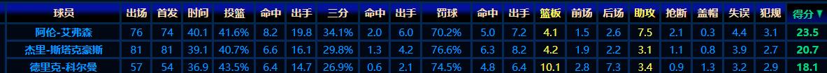 活塞第二得分手,是12.3分的乔.史密斯。还有12分的阿特金斯。
