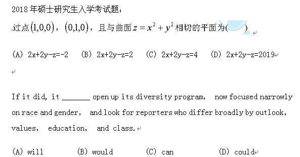 通常没见过我的孩子,除去小学生,因为它们的知识积累还没办法理解,我的第一节课都是数学方法论。结合它们已经学过的知识,总论事半功倍的学好数学的方法:联想发散、推理演绎、严谨归纳、论证排除。数学学习,无论在哪个阶段,无非是这几种核心思维转来倒去。讲排除法的时候,有一份阅读材料是它们绝对无法通过正向解题找到答案的,我选择的是2018年硕士研究生入学考试的数学题和英语题。如下: