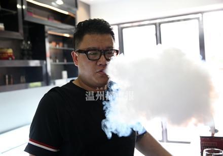 今天,记者来到欧洲城一家蒸汽烟体验馆,80后店主朱先生说他是在今年4月开的蒸汽烟店,算是温州比较早的一家。朱先生介绍玩蒸汽烟的主要是20——40岁的偏年轻的群体。“我的顾客90%以上都是为了戒烟,也有人觉得这种大烟雾的蒸汽烟很帅,‘入坑’成为玩家。”蒸汽烟主要分为三个部分,分别是电池杆、雾化器和烟油,其工作原理也十分简单,电池杆相当于点燃的烟头不断产生热量蒸发烟油产生烟雾,而雾化器和烟油则相当于传统香烟的滤嘴和烟草。只要将烟油滴到雾化器中的棉花上,启动电池杆即可吞云吐雾。