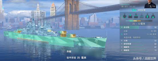 其次就是装甲的问题,25mm的外板确实算是加强,但是在VII级25MM外板是真的不够用!优秀的外板代表就是隔壁重巡线巴尔的摩的27mm。由于25MM外板无法跳任何VIII级能看到的战列炮弹,所以更加导致了克爹的生存力每况愈下。