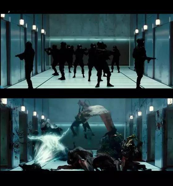 幸存的fool和virgin打开了盛满怪兽的电梯门,各路妖魔鬼魅冲出来把控制团队屠戮殆尽。而这些怪兽全部都是闻名恐怖片里的鬼魅人物:《活死人之夜》中的僵尸、《丧命弯道》中的食人魔、《迷雾》中的恶魔虫、《寂静岭》中的小女子、《午夜凶铃》中的女鬼、《小丑回魂》中的小丑、《狂蟒之灾》中的蟒蛇、《阴间男爵》里的牙仙,还有狼人、鱼人、鬼魂、巨怪等等......几乎是大乱炖的血腥狂欢节。