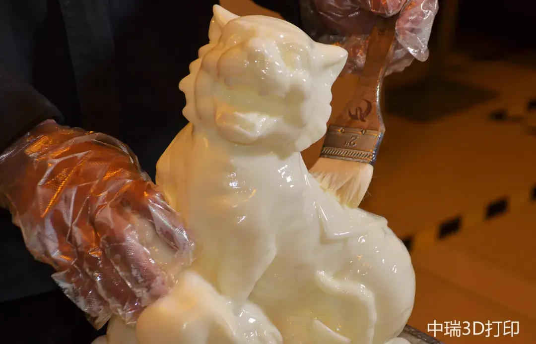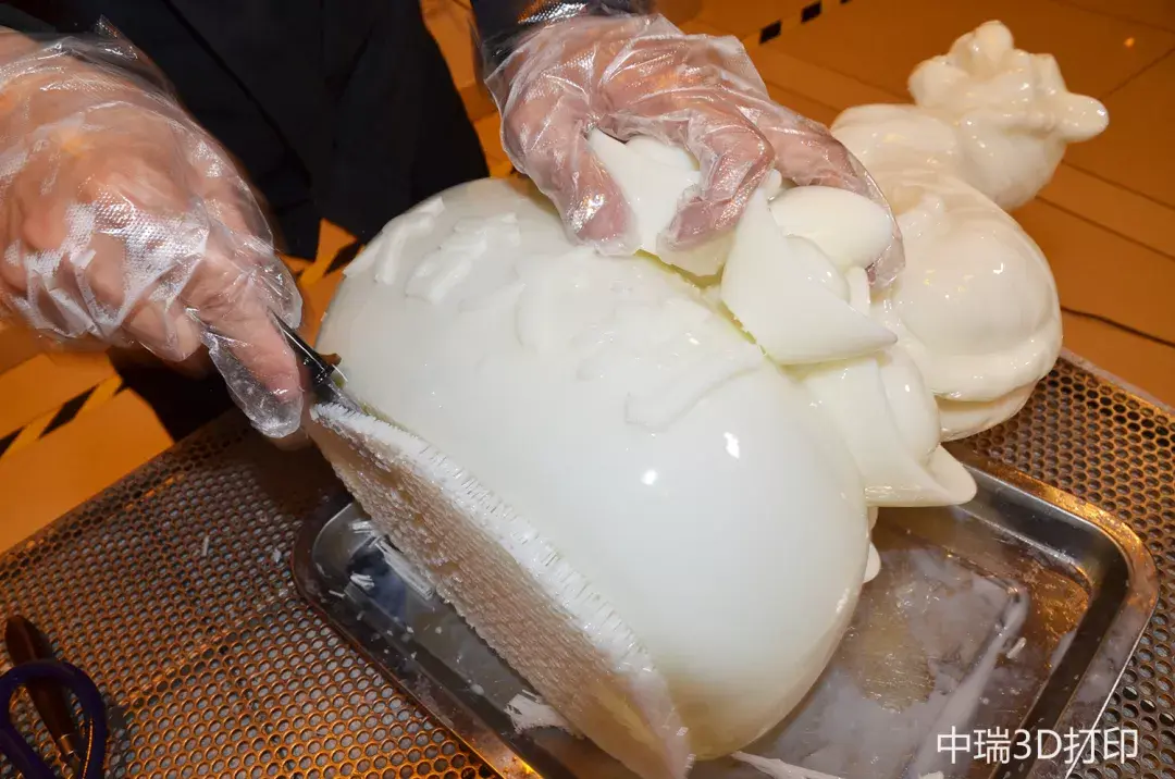 取出后先用剪刀、铲子等工具去除招财虎表面和底部的支撑。缝隙或是较难去除的地方需要通过后期打磨去除,不要强行去除,以免破坏表面。