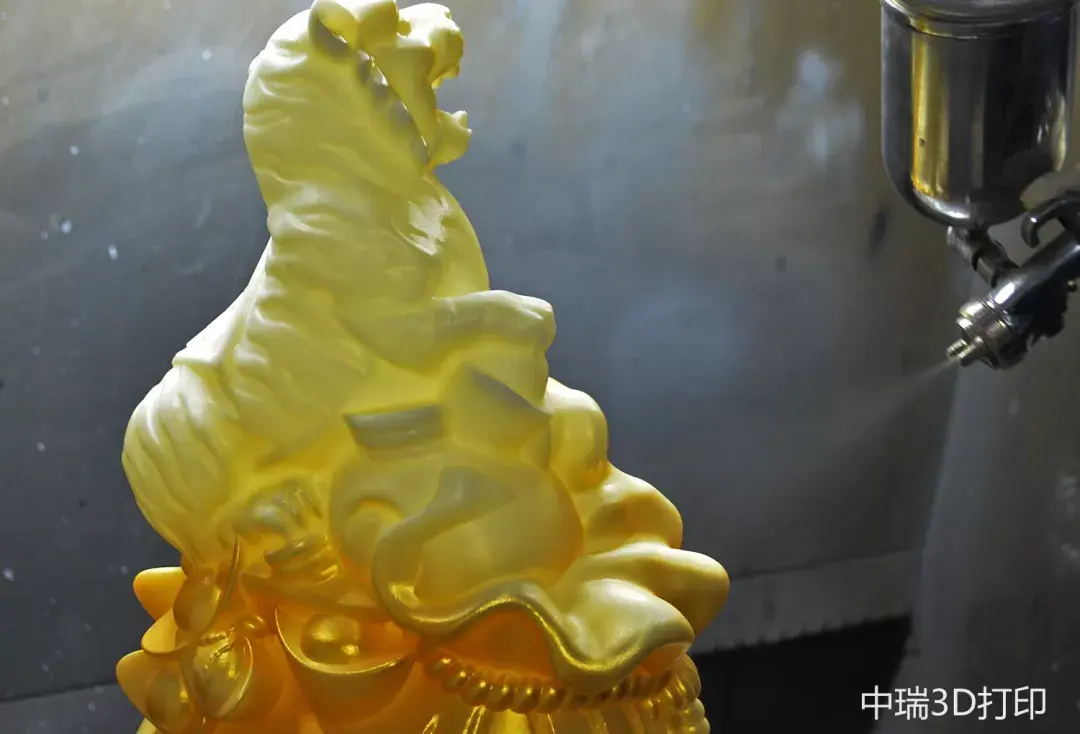招财虎打印出来是白色的,有些单调,我们给招财虎喷点金色的漆,才能看出整体效果。