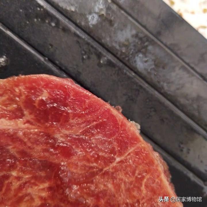 这种薄一点的牛排就会更快,拿一片放在上面: