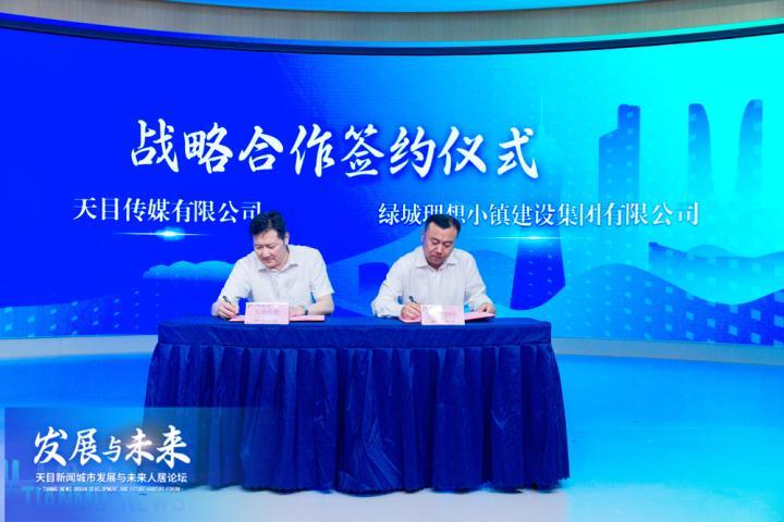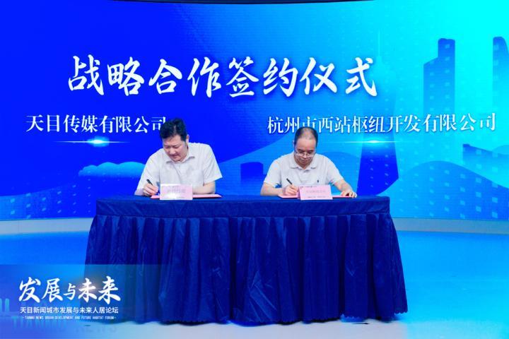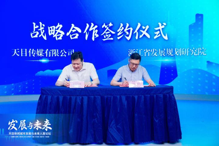 浙江省发展规划研究院、杭州市西站枢纽开发有限公司、绿城理想小镇建设集团有限公司,与天目新闻签署战略合作协议。