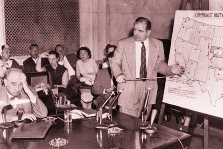 用一个高大上的词叫做"演讲"能力出众。1950年2月9日在背后势力的支持下,正值美国总统林肯纪念日,发表演讲直接炮轰国务院的姓社人员。并且声称有份205人的名单。