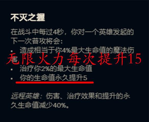 每次触发不灭之握能提升最大15点生命值。