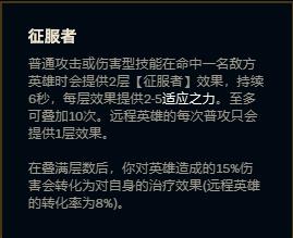 征服者算是上单的主流符文,能大幅提升英雄的持续作战能力,在一般战士英雄的标配符文,非常适合诺手、铁男这样的英雄使用。但征服者这样强势的符文到了无限火力就不一定好用了。无限火力是一个快节奏的游戏模式,战斗方式讲究迅捷性,不像正常模式的对拼,有时候走位拉扯可以打半天,在无尽联盟互秒的游戏环境下基本上没有什么叠征服者的机会。即使叠起来战斗力也没想象中的那么好。
