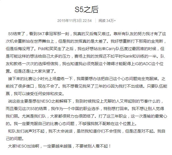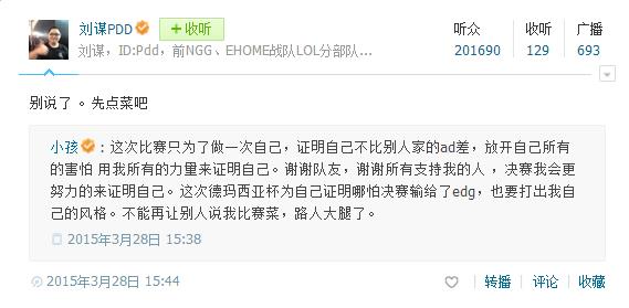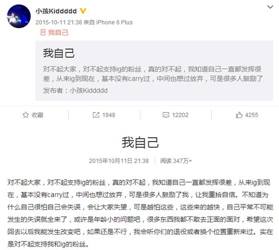 之后在直播中的话语,让大家曲解了小孩的意思,认为小孩在责怪队友,小孩也及时发了微博道歉,并且在进行自我调整: