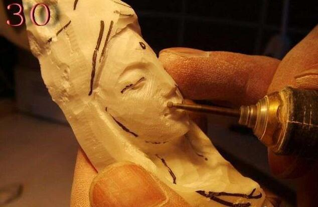 一个摆件,一件工艺品每一个细节都要经得起考验。尤其是人物像的摆件,它的开脸就显得尤其重要。下面为大家来一个详细的开脸教程。