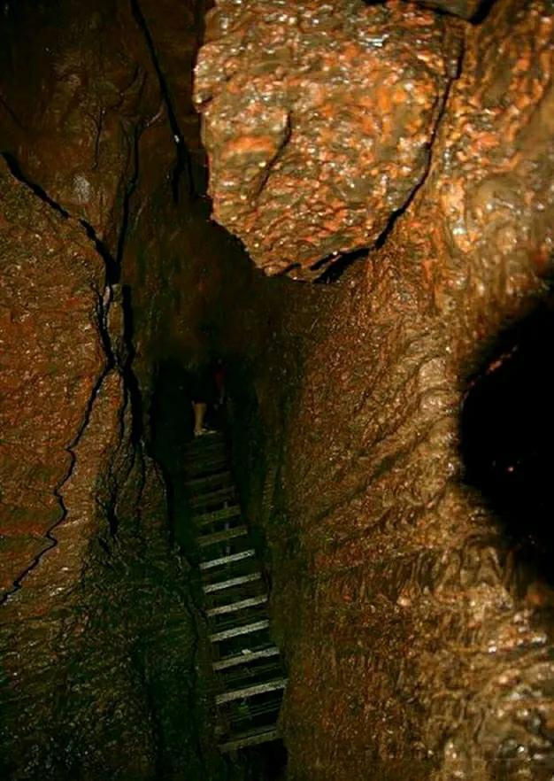 女娲洞入口处上下两层,下层为泉水通道,上层通过地面铺设钢筋网,梯子通往二层。由于景区废弃,目前洞内没有灯光,漆黑一片。想要探洞的需要强光头灯。
