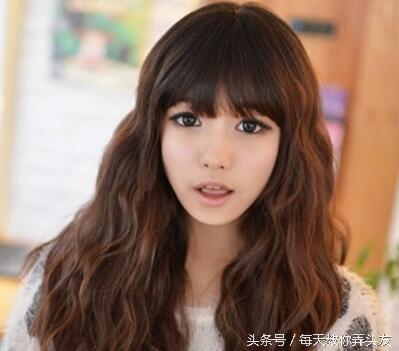 这款齐刘海的长卷发很有韩范的味道,闪动着流线美感的长卷发增加甜美感,齐刘海完美修颜,呈现精致小圆脸,看起来可爱又淑女,比较适合校园中的美眉啦。