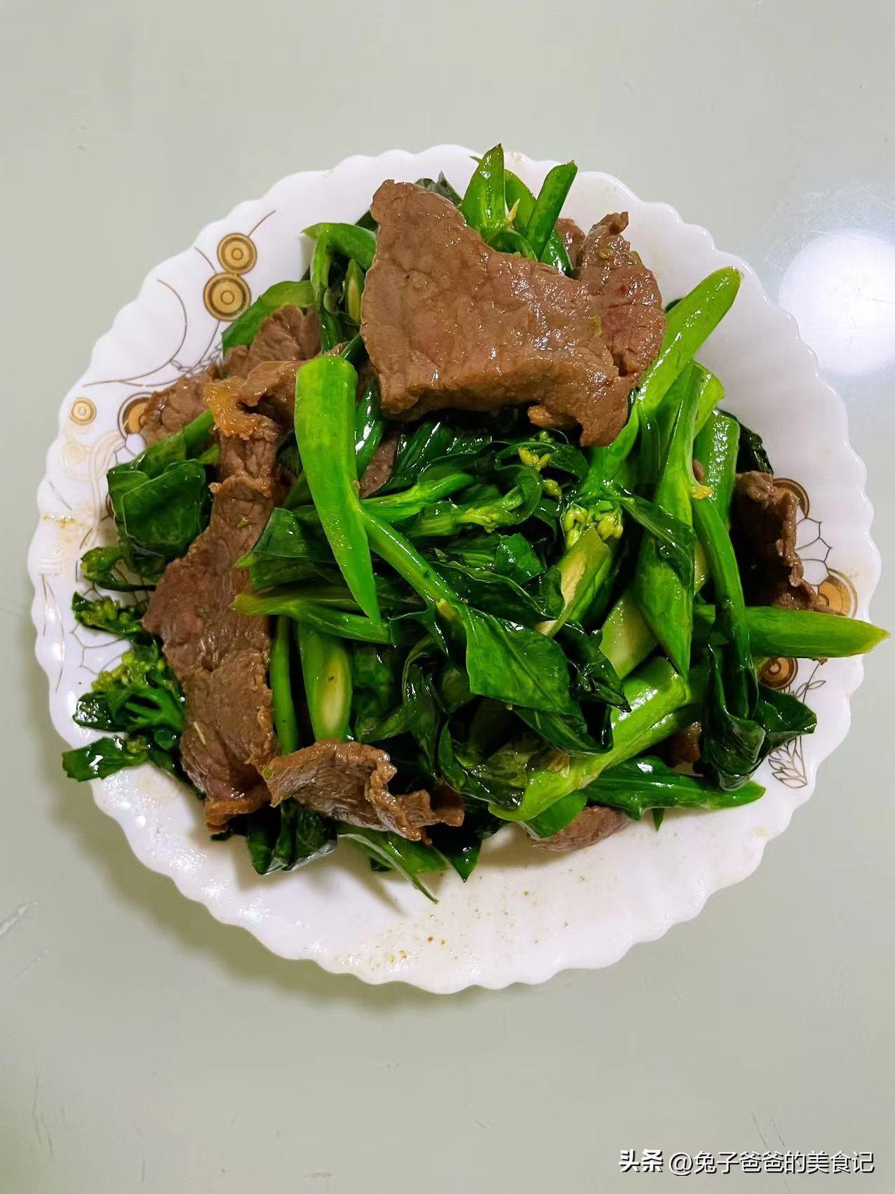 食材清单:牛肉:适量,切成薄片、芥蓝:适量,切段