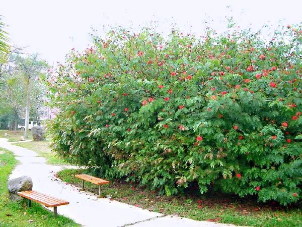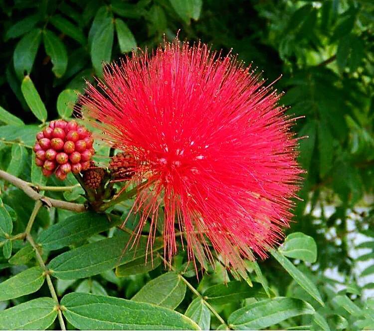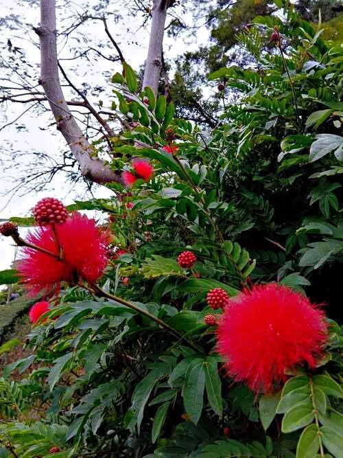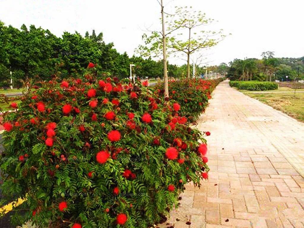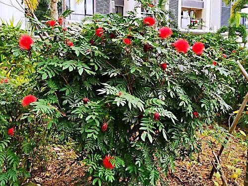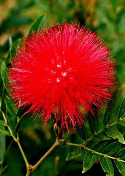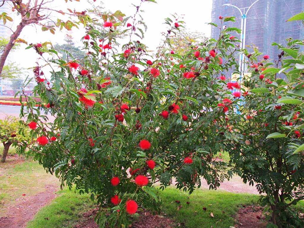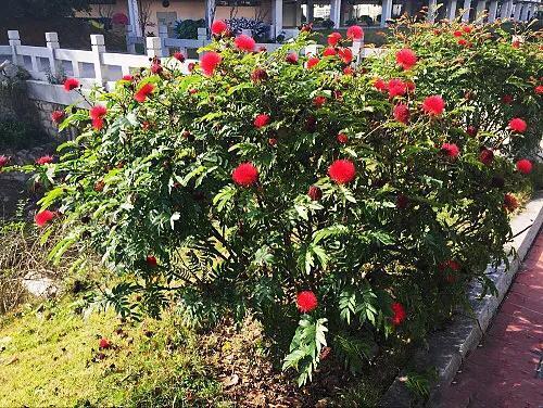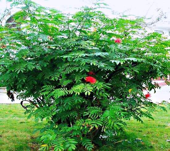 朱缨花~树姿优美,叶形翠绿雅致,绒花红艳满树,极具观赏价值