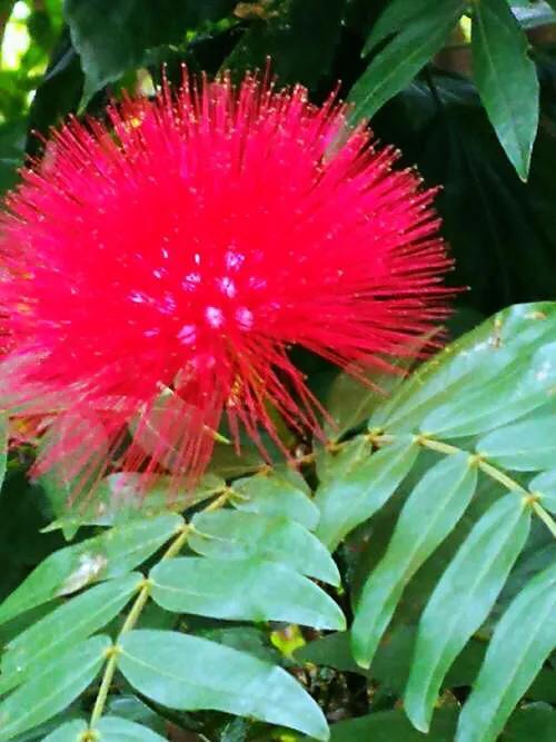 朱缨花 豆科、含羞草亚科、朱缨花属常绿灌木或小乔木,高1-3米。 别称:红绒球、红合欢、美洲合欢、美蕊花红绒球等 。中国台湾、福建、广东等省区有引种,栽培供观赏。原产南美洲,现热带、亚热带地区常有栽培。