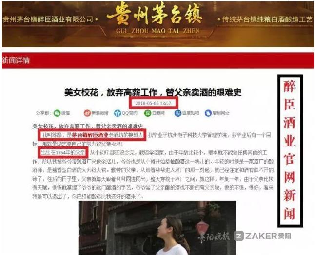 12月22日,仁怀市委宣传部对外通报:网上传播的"替父代言卖酒"推文系虚假广告,贵州省仁怀市茅台镇醉臣酒业有限公司被仁怀市市场监管局认定已造成一定负面影响,加重处罚,罚款45000元。