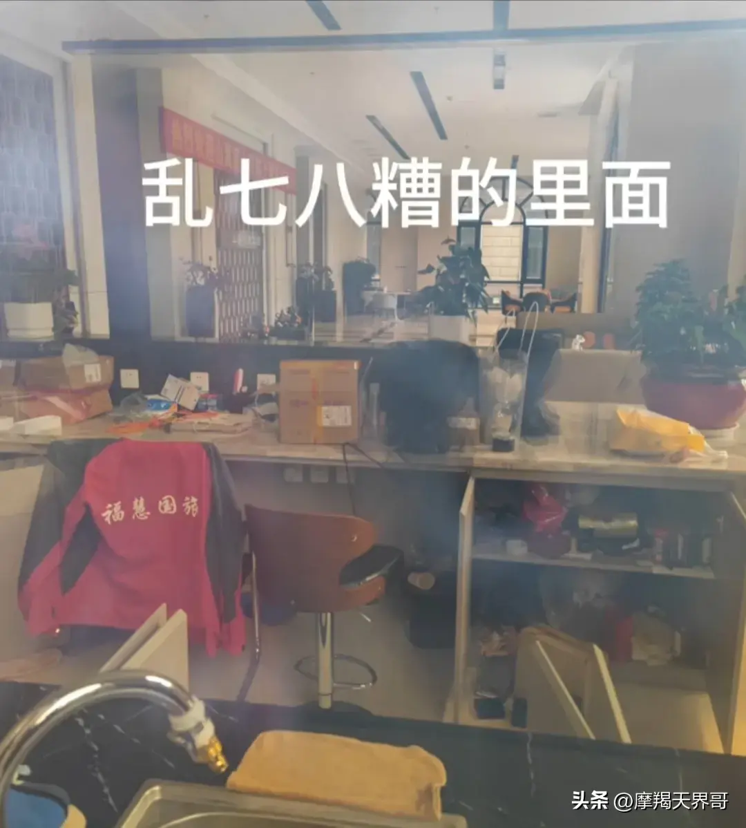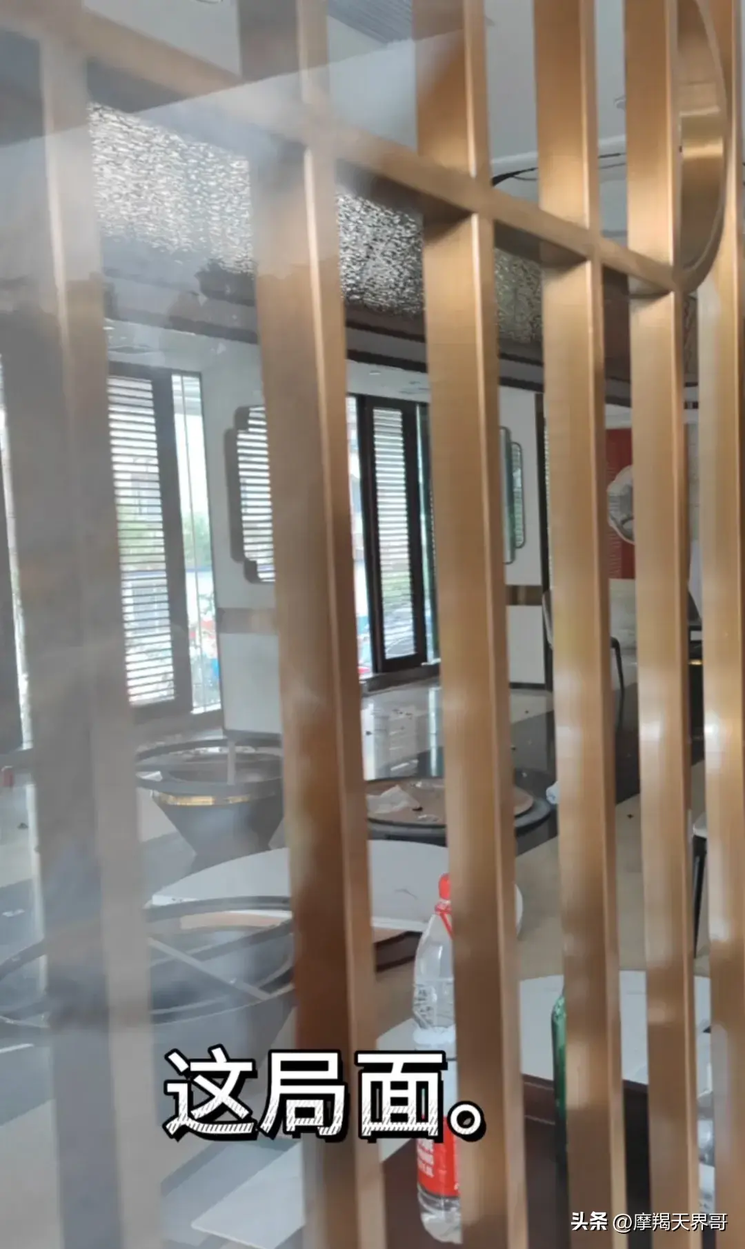 里面各种杂物散落一地,跟被洗劫过一样,听物业的人说这个餐厅欠了供货商的钱没给,被堵了几天门后就放假了,好多天没营业了。