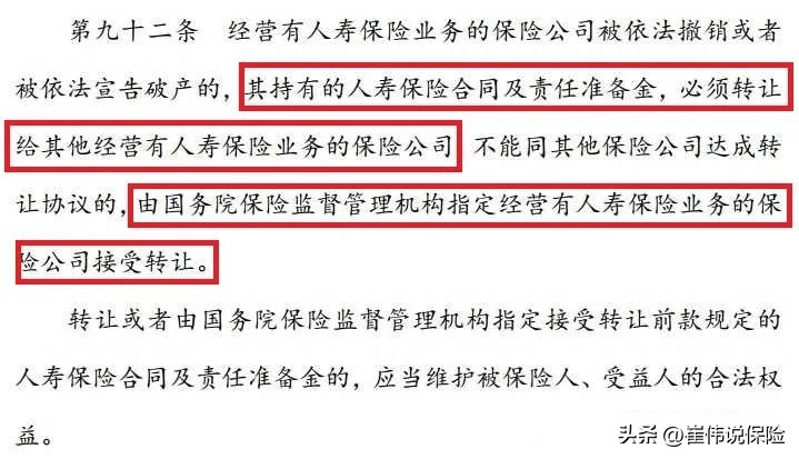 根据《保险法》第92条,经营有人寿保险业务的保险公司破产或被依法撤销,人寿保险必须有其他保险公司接手,如果没有接收方,银保监会会强行指定。