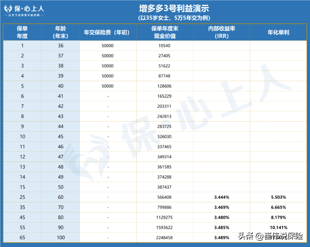 在60岁时,账户价值约57万,换算成内部收益率(相当于复利)是3.444%,年化单利是5.5%!