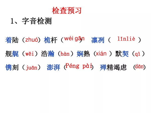 1. 着陆 凛冽 默契 殚精竭虑 镌刻 桅杆